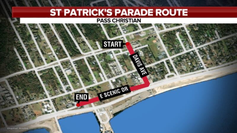 March 19th - Pass Christian’s Krewe of Blarney St. Patrick’s Parade The parade starts at 1pm on Davis Avenue at the railroad tracks and proceeds south to E. Scenic Drive, ending with a block party at Bacchus on the Beach. The 2022 Colleen is Samantha Broussard and Grand Marshal is Darren Freeman.