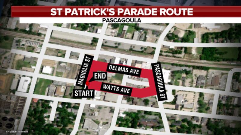 The St. Patrick’s parade will roll at 7:30 p.m. The parade will start at the corner of Watts Avenue and Magnolia Street, travel east on Watts, north on Pascagoula Street, west on Delmas Avenue, and south on Magnolia, finishing where it started.