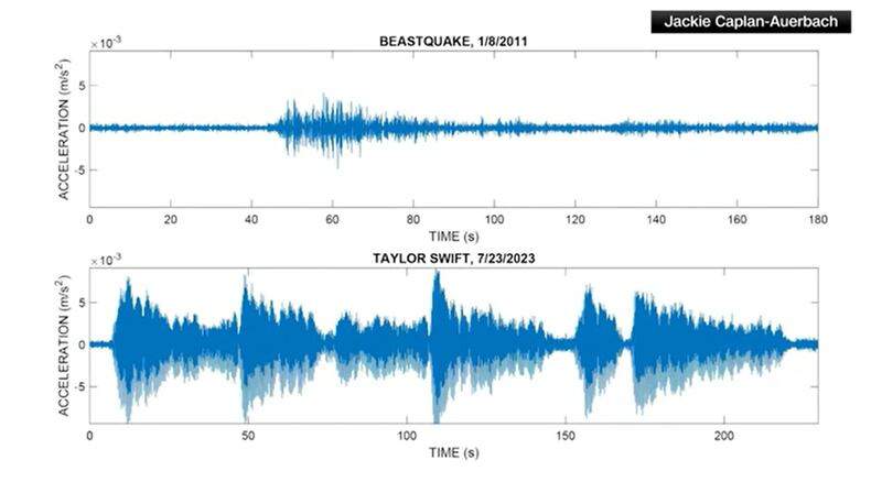 There happens to be a seismometer next to the stadium, and Jackie Caplan-Auerbach, a geology professor at Western Washington University, decided to compare the seismic activity and determined the Swift shake is the clear champion.