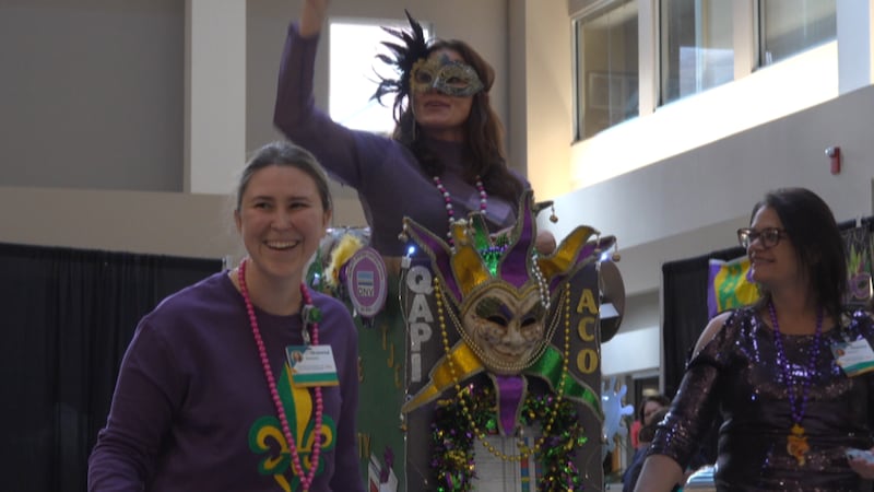 GULFPORT, Miss. (WLOX) - Memorial Hospital Gulfport held a Mardi Gras parade and box float contest on Thursday, with teams from various hospital departments creating their own decorated floats.
